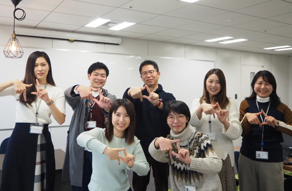東京オフィスの業務支援室のメンバー *パーソル(PERSOL)の「P」を模したポーズで